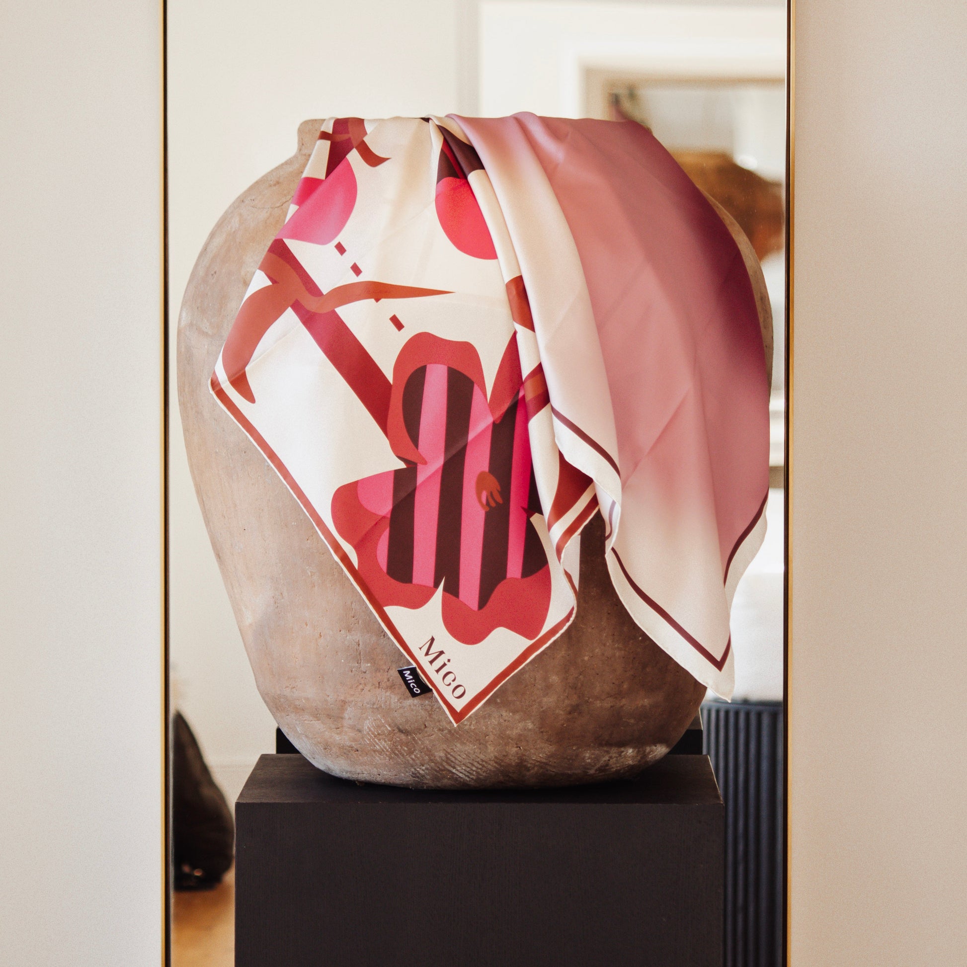 Mauve Mist is the ultimate expression of tonal luxury. Crafted from 100% silk twill in a rich 16mm weave, this piece forgoes pattern entirely, allowing the silk's fluid movement to carry the design. It features a masterful, seamless execution of blended colour. Deep, complex shades of plum and rich cocoa melt into a soft, ethereal cloud of dusty lilac and pale rose. It is a modern study in light and depth. This scarf is an essential foundational layer—the refined accessory designed for effortless monochrome styling and quiet confidence.