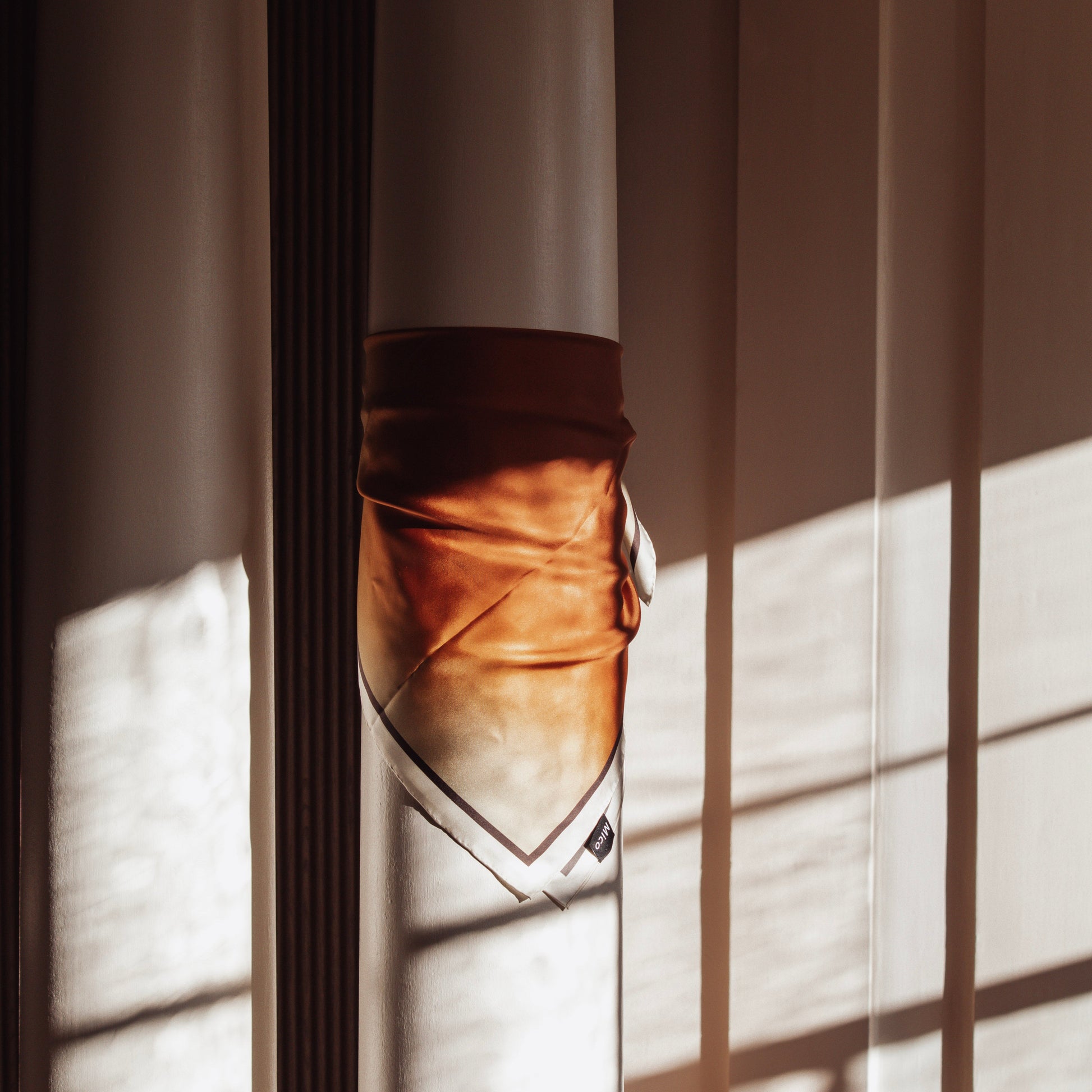 Espresso Mist is the definitive piece for luxe, tonal dressing. Crafted from 100% silk twill in a rich 16mm weave, this design is a masterful execution of depth and warmth, capturing the sophisticated, layered shades of a perfectly poured espresso. Intense, saturated dark cocoa and deep mocha melt into a luminous, amber glow. It is a modern study in shadow and light, allowing the silk's fluid movement to define the art. This scarf is an essential foundation layer—designed to anchor and enrich any look with its sheer, unwavering colour confidence and understated luxury.