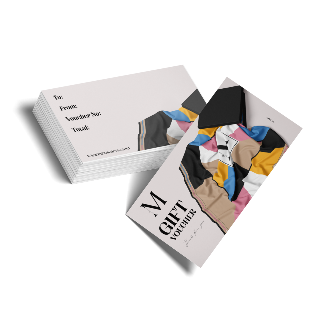 The perfect gift to say thank you, happy birthday, I love you and much more! These physical gift vouchers come with an envelope and are the ideal present for the fussy ones. Let them choose a scarf they love with these personalised gift vouchers.
